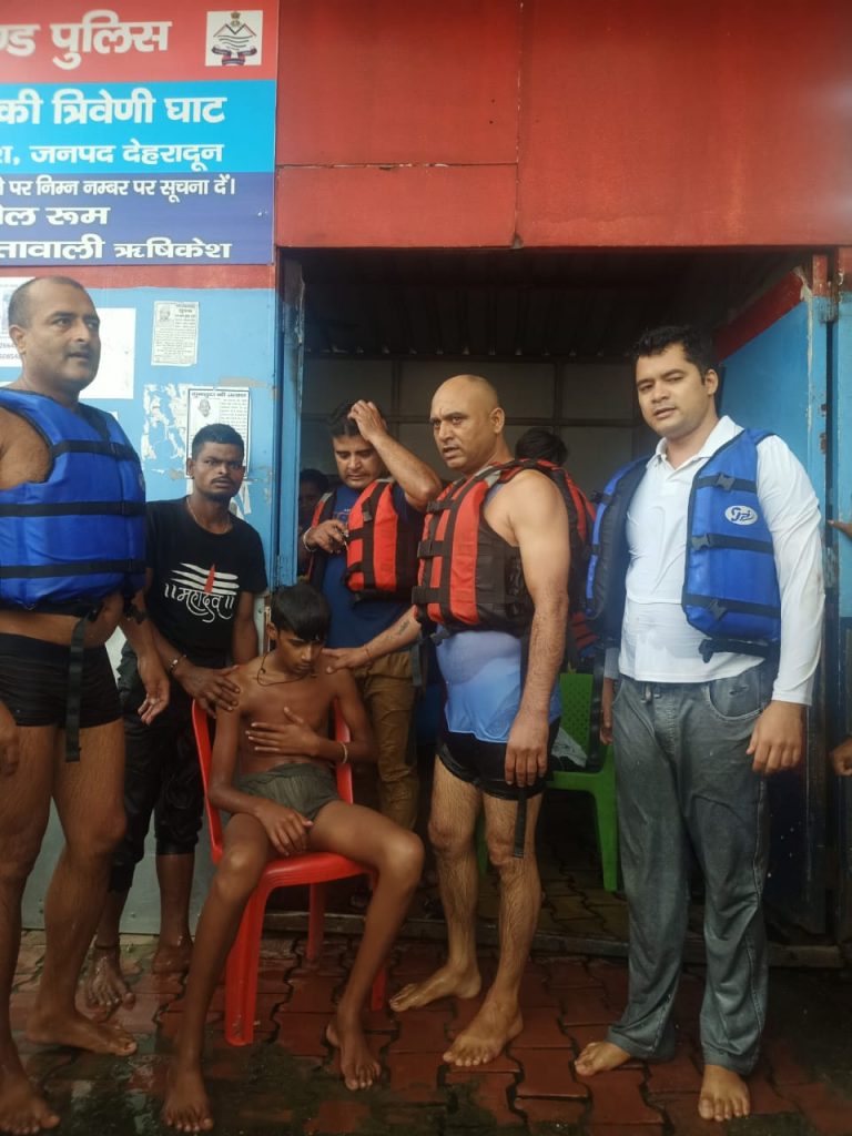 कुछ दिनों से पहाड़ों में हो रही अत्यधिक बारिश के कारण गंगा नदी का जलस्तर काफी बड़ा हुआ है। त्रिवेणी घाट चौकी पर नियुक्त जल पुलिस वह आपदा राहत दल के कर्मचारी चौकी इंचार्ज उपनिरीक्षक बिनेश कुमार के नेतृत्व में लगातार गंगा नदी के तट पर निवास कर रहे लोगों को अलर्ट किया जा रहा है। पुलिस कर्मचारियों को अगस्त के दौरान आज दोपहर लगभग सवा 12 बजे त्रिवेणी घाट पर चीख पुकार सुनाई दी । पुलिस टीम द्वारा देखा गया के एक व्यक्ति गंगा जी के बीचोबीच बहकर जा रहा है। पुलिस कर्मचारियों द्वारा तुरंत व्यक्ति को बचाने के लिए नदी में कूद पड़े करीब डेढ़ सौ मीटर बह चुके व्यक्ति को पुलिस टीम द्वारा कड़ी मशक्कत के बाद कुशल गंगा जी से बाहर निकल गया पूछताछ करने पर बच्चों द्वारा अपना नाम नैतिक रावत पुत्र पूरण सिंह रावत उम्र 14 वर्ष, कक्षा 9वीं का छात्र बताया गया