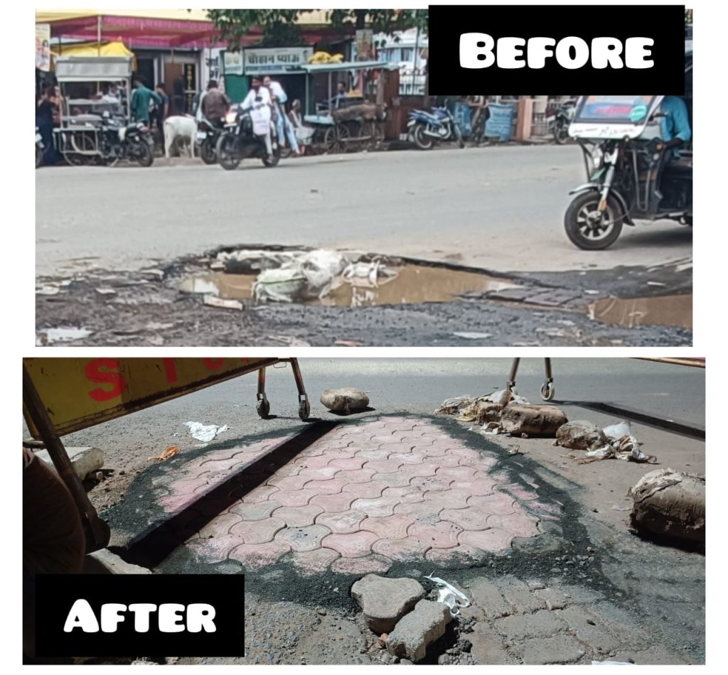 दमोह शहर का किल्लाई नाका व्यस्ततम चौराहा, शायद ही दमोह शहर का कोई नागरिक हो जो यहा के सड़क के गड्डों के बारे में परिचित ना हो, हर व्यक्ति यहां से अवश्य गुजरता है, इस बारे मे माननीय कलेक्टर श्री सुधीर कोचर सर को यहां की जानकारी अवगत कराने पर तुरंत संग्यान में लेते हुए उन्होंने गड्ढ़ा भरने के निर्देश दिए, जिले के स्वच्छता ब्रांड एंबेसडर हरीश पटेल भी स्वयं मौजुद रहे कार्य पूरा होने तक ,साथ ही स्वच्छता टीम मत करो ना यार के किशन ठाकुर, प्रदीप परिहार भी साथ में रहे..गड्डा भर जाने से इससे होने वाली सड़क दुर्घटना भी बचेगी, और अब आसानी से लोग यहां से निकल सकेंगे. कार्य को करने वाले नगर पालिका विभाग ठेकेदार अमित सेठ के साथ नपा कर्मचारी भी वहां मौज़ूद रहे, सभी का धन्यवाद. !!